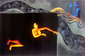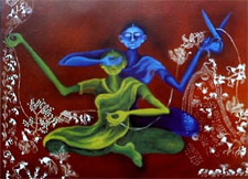 ARPANA CAUR: Since 1975 Arpana has had 18 solo shows of her paintings. Her works are found in private & permanent collections including in NGMA, New Delhi, Ethnographic Museum Stockholm, Kust Museum Dusseldorf, Victoria & Albert Museum London, Glenberra Museum Japan, Singapore Museum of Modern Art. Recipient of the AIFACS award in 1985. |
